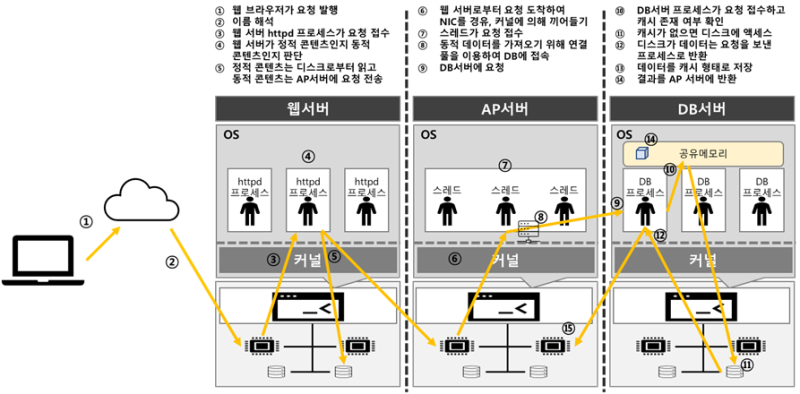 3계층 시스템에서는 사용자 요청에서 출발하여 해당 요청이 다양한 서버로 전달되고, 자신이 처리할 수 없을 경우 다음 서버에게 역할을 넘깁니다.